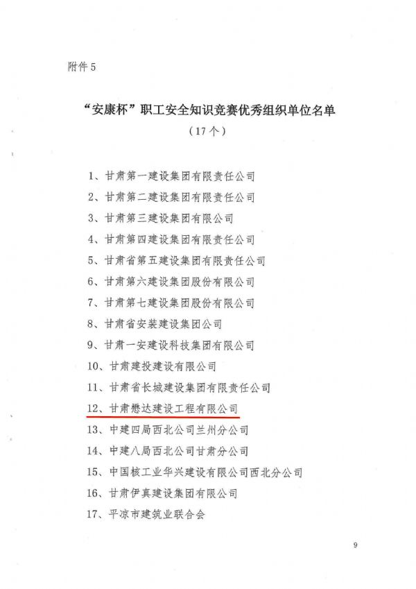 懋達(dá)建設(shè)十位職工代表榮獲甘肅省建設(shè)行業(yè)“安康杯”競(jìng)賽二、三等獎(jiǎng)